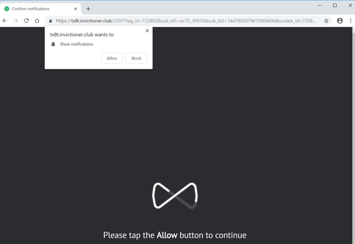 Invictioner.club installs on your PC along with free software. This method is called "bundled installation". Freeware offers you to install additional module (Invictioner.club). Then if you fail to decline the offer it starts hidden installation. Invictioner.club copies its file(s) to your hard disk. Its typical file name is (random file).exe. Then it creates new startup key with name Invictioner.club and value (random file).exe. You can also find it in your processes list with name (random file).exe or Invictioner.club. Also, it can create folder with name Invictioner.club under C:\Program Files\ or C:\ProgramData. If you have further questions about Invictioner.club, please ask below. You can use programs to remove Invictioner.club from your browsers below.