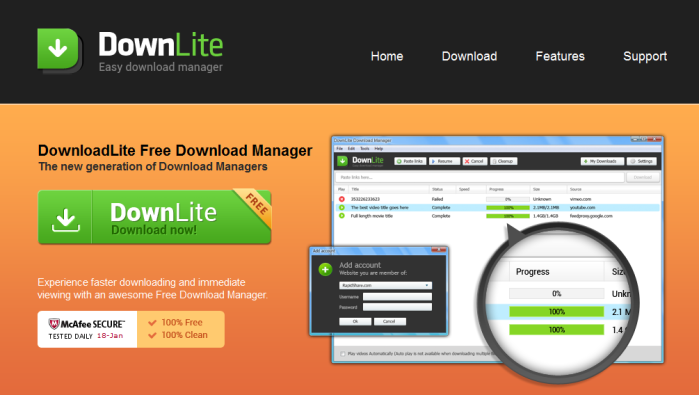 DownLite - is a deceptive download application, which is developed by cyber crooks. Developers of this program claim, that DownLite allows user to download different media files, but it is considered as PUP (Potentially Unwanted Program). It generates and displays various advertisements, like banners and pop-ups. Those advertisements annoys and disturb user, Such programs usually use “bundling” to get installed on users PC. We recommend you to remove DownLite from computer as soon as possible.