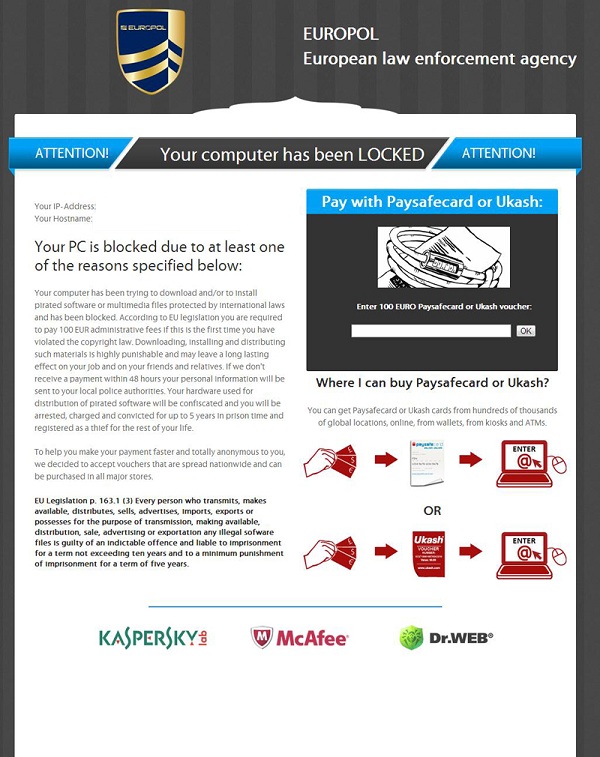 Submit support ticket below and describe your problem with European Law Enforcement Agency Virus. Support team will offer you solution in several minutes and give a step-by-step instruction on how to remove European Law Enforcement Agency Virus. Trouble-free tech support with over 10 years experience removing malware. ![]() Threat's description and solution are developed by Security Stronghold security team. Here you can also learn: